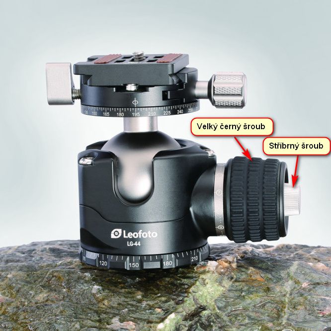 Nastavení stativové hlavy LG-44 (obsluha velkého šroubu pravou rukou)