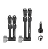 Tyto pojistky v objímce fungují v případě, že rameno upevňuje pomocí 3/8“ šroubu. Pokud potřebujete, pomocí adaptérů můžete vyměnit šrouby na konci ramena za 1/4“. Stačí vám na to přiložený malý imbusový klíč a minutka času. Myslím si, že rameno AM-4Kit je opravdu spolehlivé, a navíc i nejuniverzálnější. Je dost silné na to, aby udrželo mirrorless foťák či menší zrcadlovku s lehkým objektivem. Žádný problém mu teda nedělá mikrofon, světlo, blesk nebo jiné menší příslušenství. Takže pokud můžeme shrnout zkušenosti s rameny, opatrně s AM-2 a trochu i s AM-4, s AM-4Kit úplně bezpečně, jednoduše a univerzálně.