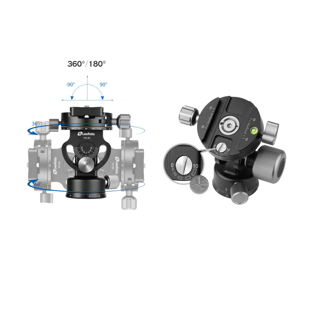 Hlava VH-20 je robustní hlava pro monopody. Tuhost pohybu a pohyblivost ve vertikální směru se nastavuje jediným ovládacím prvkem. Hlava je sklopitelná o 90°ve dvou směrech. Pro přesnou kontrolu je k dispozici škála náklonu.