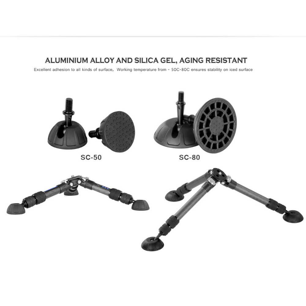 Koncová "opěrka" nohou stativu. Koncovka je rozšířená ve srovnání se standardním ukončením stativových nohou kvůli lepší adhezi na různých površích. Vyrobeno z hliníkové slitiny a silikonu odolného vůči stárnutí, odolnost od -50°C do 80°C. Průmer: 80mm