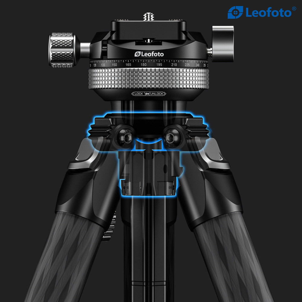 Inovace stativové série Leofoto Mr. Y se ovšem neomezují na novinky patrné pouze při prvním pohledu. Při důkladnějším prozkoumání je vidět, že "zarážky" poloh stativových nohou nejsou pouze tři, jak je zvykem u ostatních stativů, ale má polohy čtyři. Proč? Poloha ve 42° je stabilnější při větru než základní poloha (23°) a zároveň není stativ tak moc rozkročený (60°).