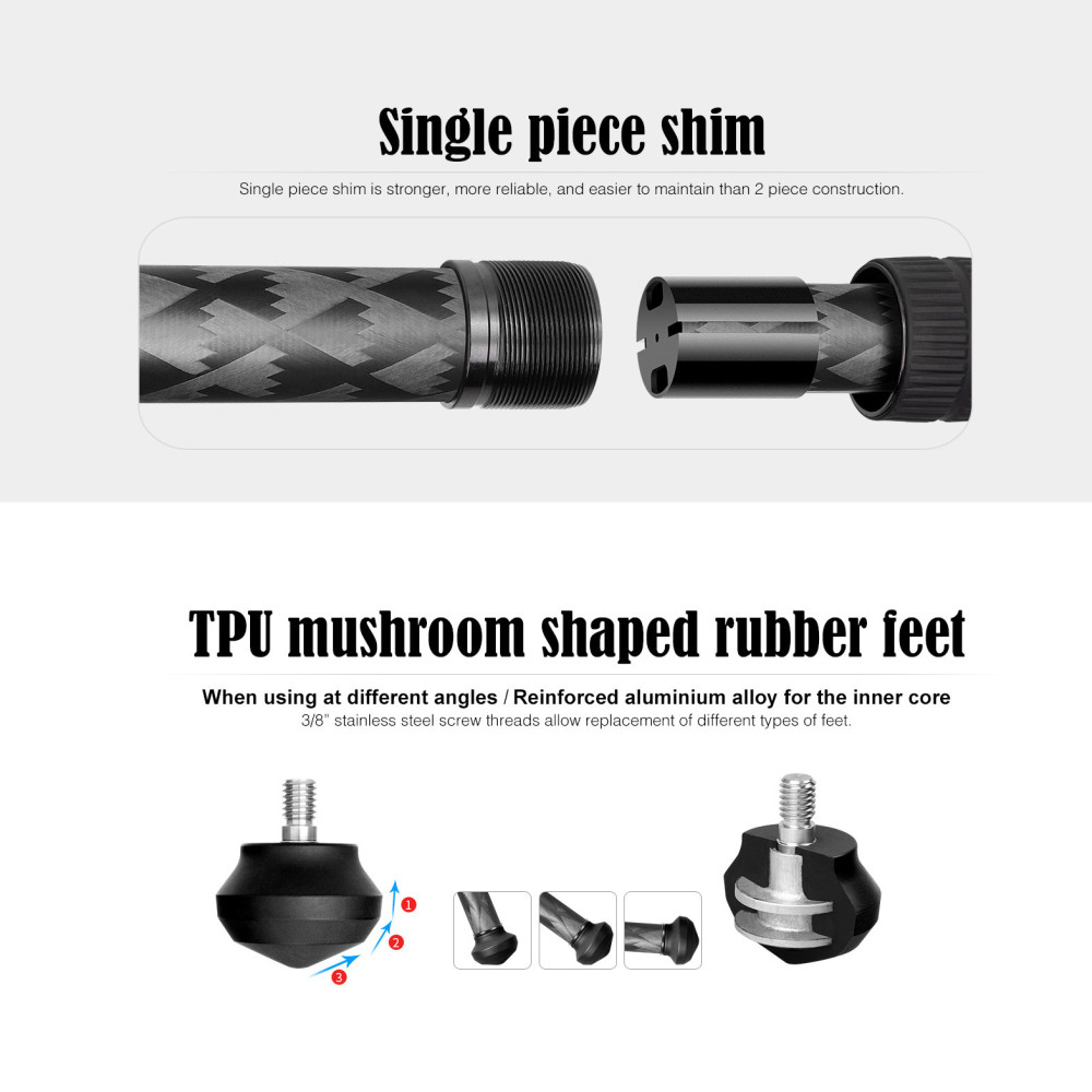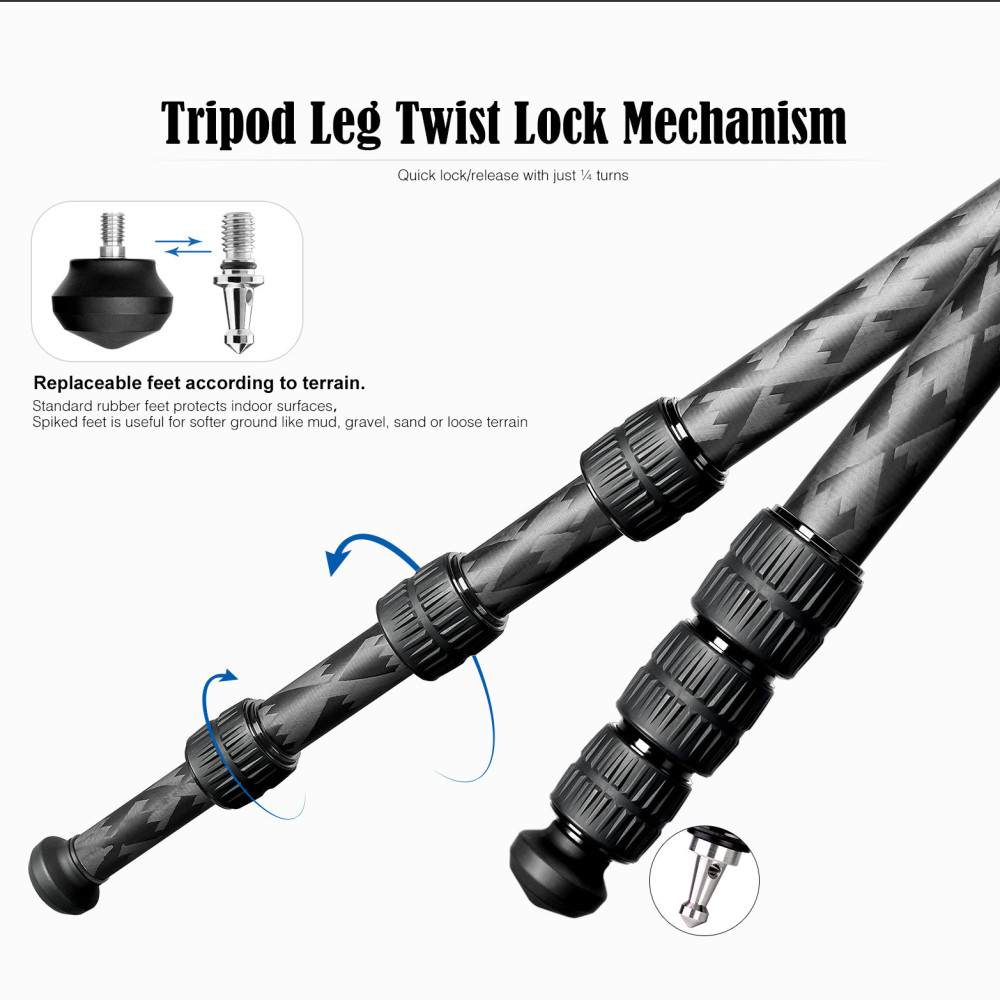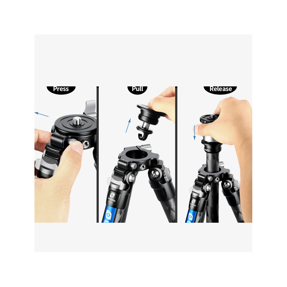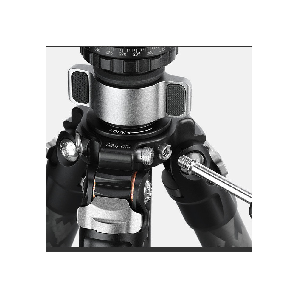 Minimální pracovní výška stativu LQ-324C je 165 mm nad zemí – stativ je tak ideální volba pro makrofotografy. Každá stativová noha se skládá ze čtyř segmentů, mají průměry 32, 28, 25 a 22 mm.