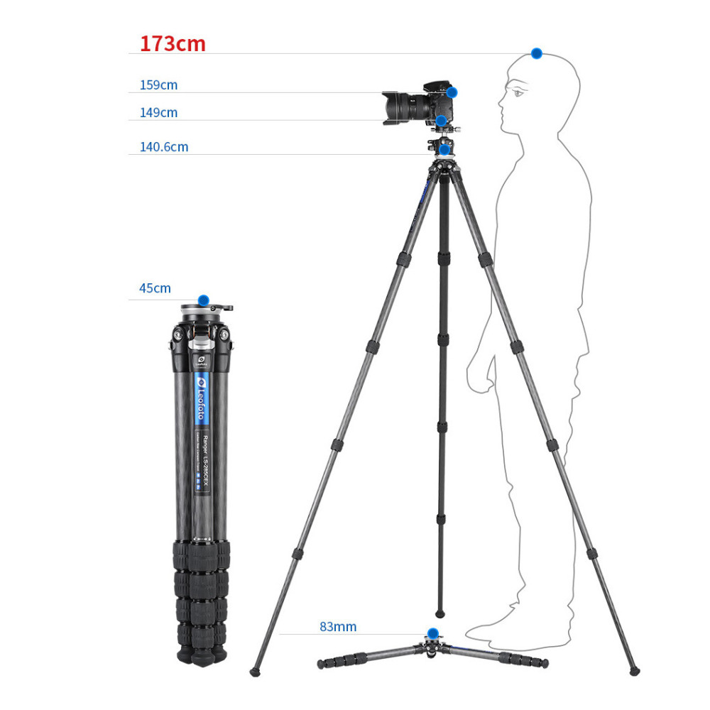 Také tento model je, stejně jako všechny stativy řady Ranger je navržen tak, aby doprovázel fotografy na delších cestách ve volné přírodě. Lehký, kompaktní a přesto mimořádně robustný a silný: všechny atributy, které jsou také součástí standardu 5 sekčního karbonového stativu s nivelační základnou Leofoto Ranger LS-255CEX. Transportní velikost sestavy je 450 mm. Po úplném vytažení nožních segmentů lze dosáhnout maximální pracovní výšky 1406 mm. Balení obsahuje víceúčelový nástroj a sadu hrotů z nerezavějící oceli - vše je dodáváno společně s taškou. S vlastní váhou stativu pouhých 1030 g je vybavení velmi lehké. Nosnost sestavy je 6 kg. Každá stativová noha se skládá z 5 segmentů, mají průměry 25, 22, 19, 16 a 13 mm.