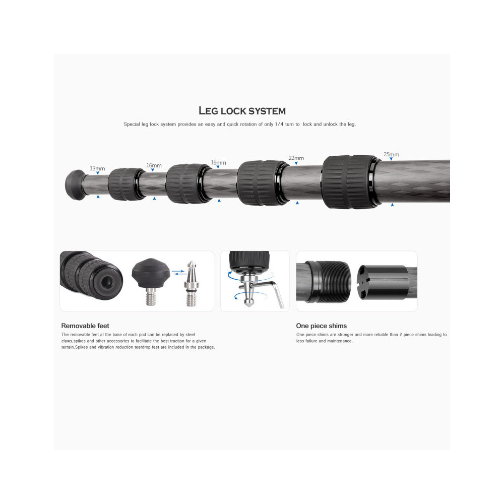 Také tento model je, stejně jako všechny stativy řady Ranger je navržen tak, aby doprovázel fotografy na delších cestách ve volné přírodě. Lehký, kompaktní a přesto dostatečně robustný a silný: všechny atributy, které jsou také součástí standardu 5 sekčního karbonového stativu s nivelační základnou Leofoto Ranger LS-255CEX.