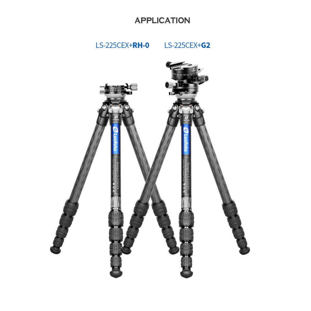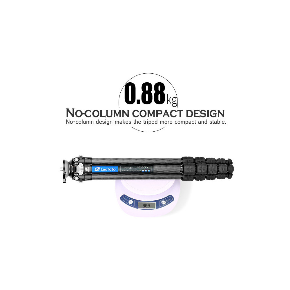 Lehký karbonový stativ Leofoto Ranger LS-225CEX je větším bratrem velmi kompaktního, do kapsy se hodícího stativu LS-223CEX. Jeho velikost ve sbaleném stavu je 449 mm. Je již větší, ale v žádném případě není nekompaktní. V rozbaleném stavu má stativ příjemných 1400 mm. Stativ Leofoto Ranger LS-225CEX je vybaven nivelační základnou. Balení obsahuje víceúčelový šikovný multifunkční nástroj a sadu hrotů z nerezavějící oceli. Maximální nosnost stativu je 4 kg. To je ideální pro bezzrcadlovku, anebo pro DSLR s menším objektivem. Celá sestava je velmi lehká, karbonový stativ LS-225CEX váží 880 g. Je tedy dokonalým příslušenstvím pro cestování. Nohy stativu sestávají z 5 segmentů, průměry trubek jsou 22, 19, 16, 13 a 10 mm.