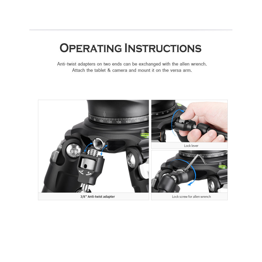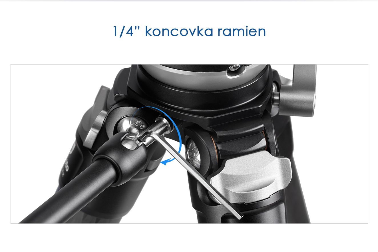 Rameno je kompatibilní s každým přislušenstvím s přístupným závitem 3/8", nebo 1/4".