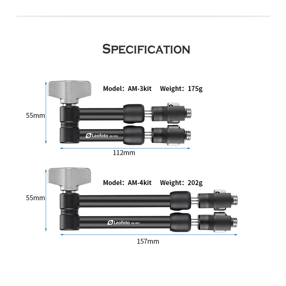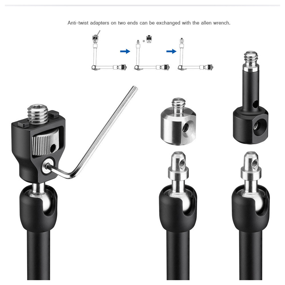 Univerzální rameno pro připojení příslušenství na stativ. Verze "KIT" je na obou koncích opatřena koncovkama s vyměnitelnýma šroubama se závitem 3/8" a 1/4".