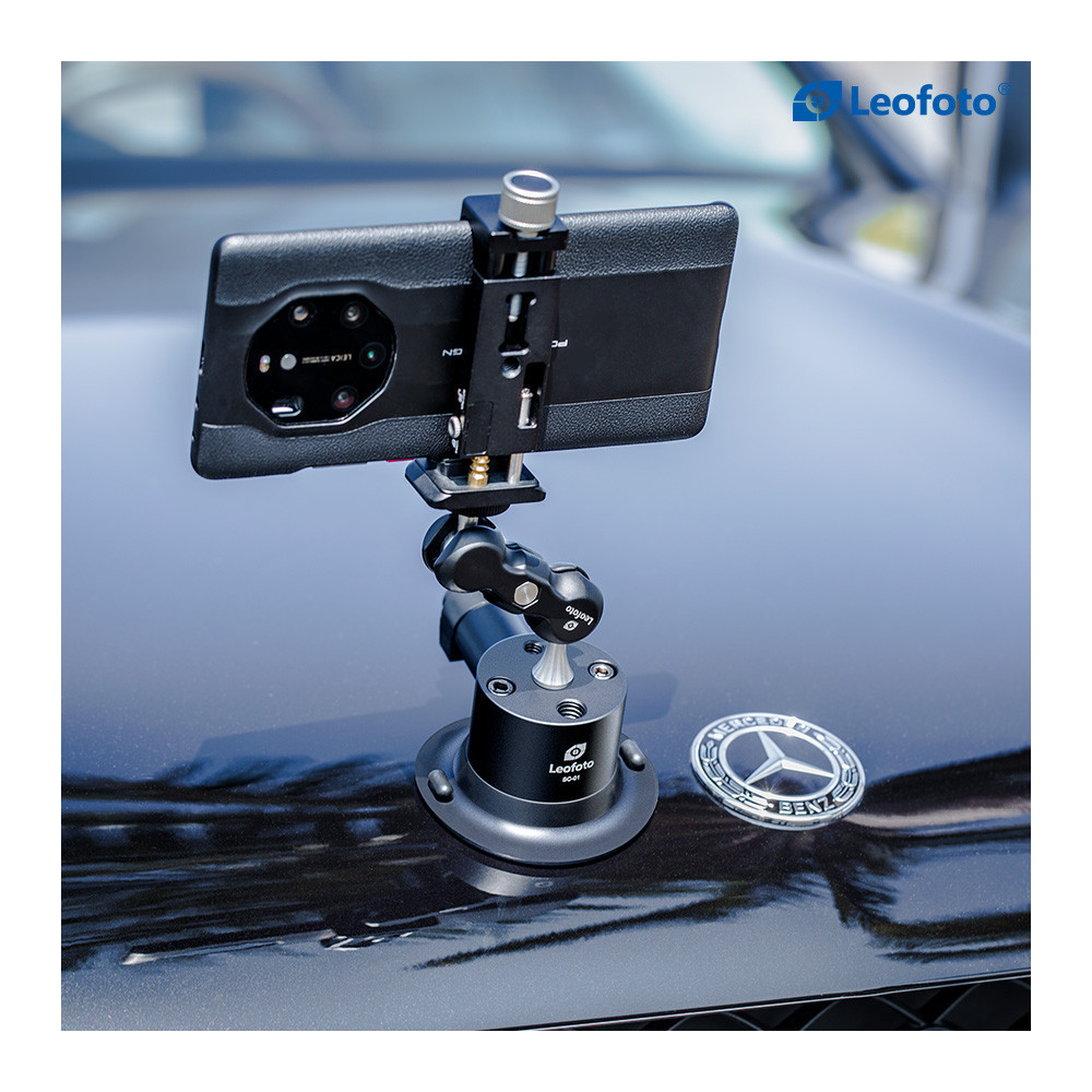 Vysoce adhezivní podtlaková přísavka Leofoto. Vyrobena je ze slitiny hliníku, se silikonovým ukončením. Spolehlivě drží na všech hladkých površích (sklo, keramika, hladké dřevo, lak). Pro přisátí stačí pumpičkou vytvořit podtlak.