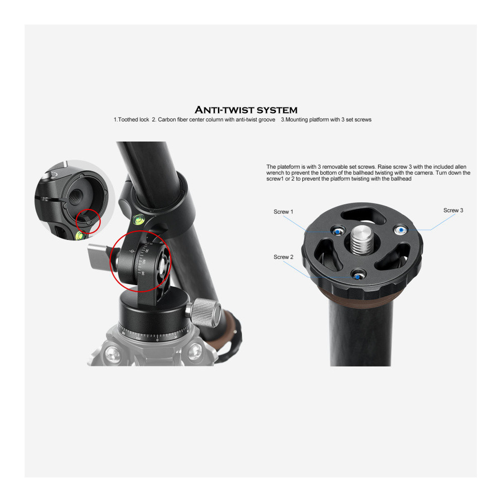 Středový sloupek se závitem 3/8", který lze namontovan na libovolný stativ ukončený rovnou platformou s průměrem větším než 54mm. Sloupek umožňuje 360° horizontální pohyb kolem osy stativu a vertikální náklony 180°. Na sloupek je možné namontovat kulovou hlavu pomocí revezribilního 1/4" (3/8") šroubu. Sloupek je ideálním dopňkem fotografa při snímání makrozáběrů.