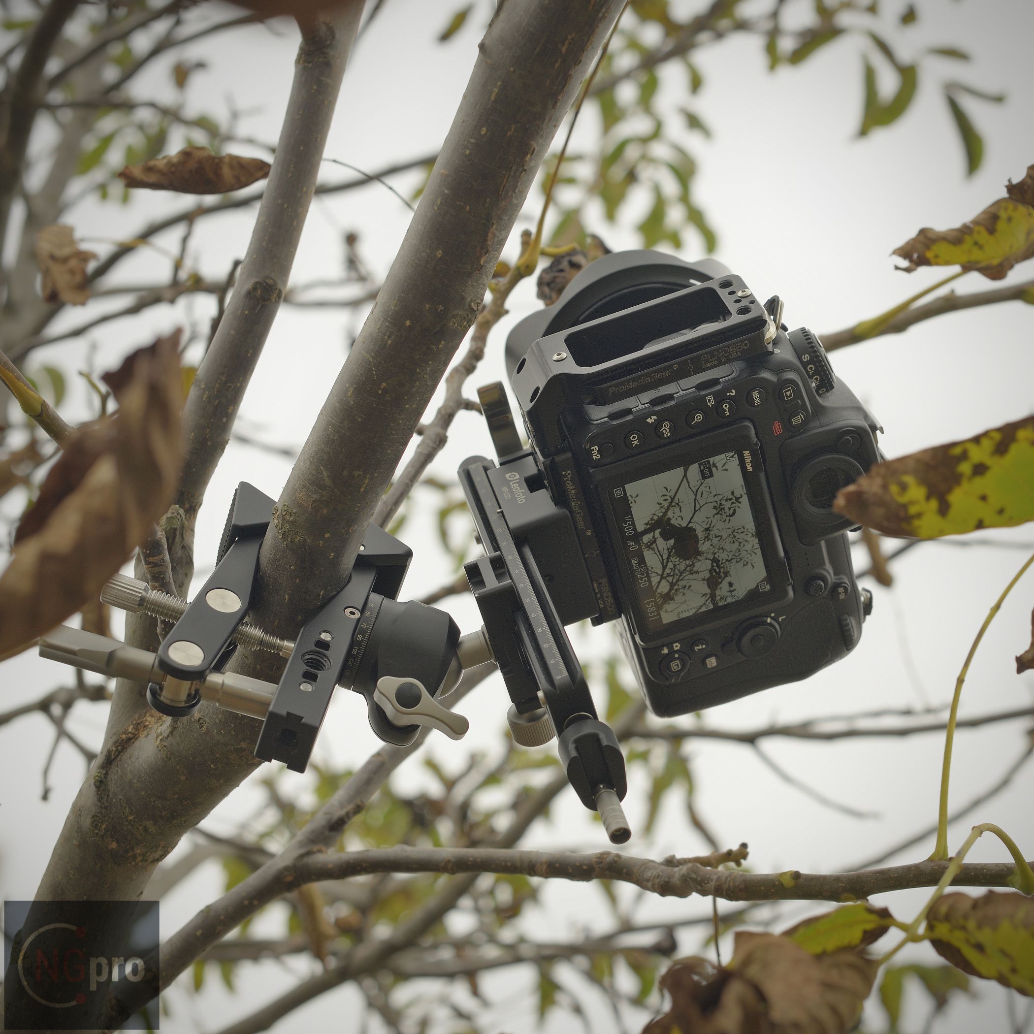 Tato sestava je poslední testovaná, víceméně experimentální, ale přesto úspěšně použitelná: svorka Leofoto MC-100, hlava LH-25, a makroposuv MP-150. Použití této kombinace by se dalo vystihnout výrokem, že ani makro snímané na stromě není nepřekonatelnou výzvou pro konstruktéry z Leofoto. Sestavená kombinace totiž obsahuje univerzální svorku, kterou je možné při troše fantazie upnout v podstatě kamkoliv (větev stromu, plot, stůl, deska, kovový sloupek…). Je mnoho možností, kam je možné svorkou namontovat a mohu potvrdit, že svorka skutečně drží pevně. S touto kombinací se mi pracovalo velmi dobře. Člověk si jen musí uvědomit, kam svorku montuje. Stalo se mi, že jsem svorku upínal na desku lávky, kde dřevo bylo mírně trouchnivé. Naštěstí jsem si toho všimnul ihned po montáži svorky, ještě předtím, než se kus dřeva zcela ulomil a fotoaparát by se utopil ve vodě …