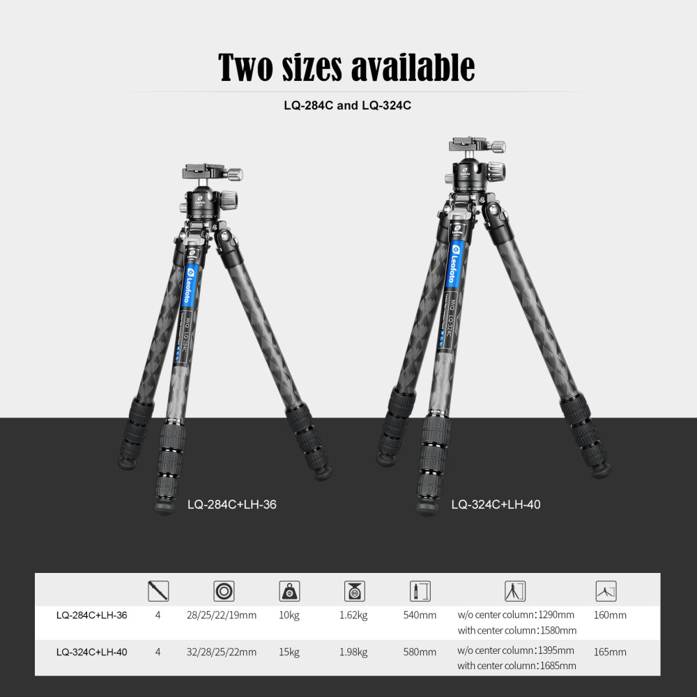 Také tento model je, stejně jako další stativy řady Mr.Q je navržen tak, aby doprovázel fotografy na delších cestách ve volné přírodě. Lehký, kompaktní a přesto mimořádně robustný a silný: všechny atributy, které jsou také součástí standardu karbonového stativu Leofoto Mr.Q LQ-284C. Stativ je dodáván s hlavou LH-36.
