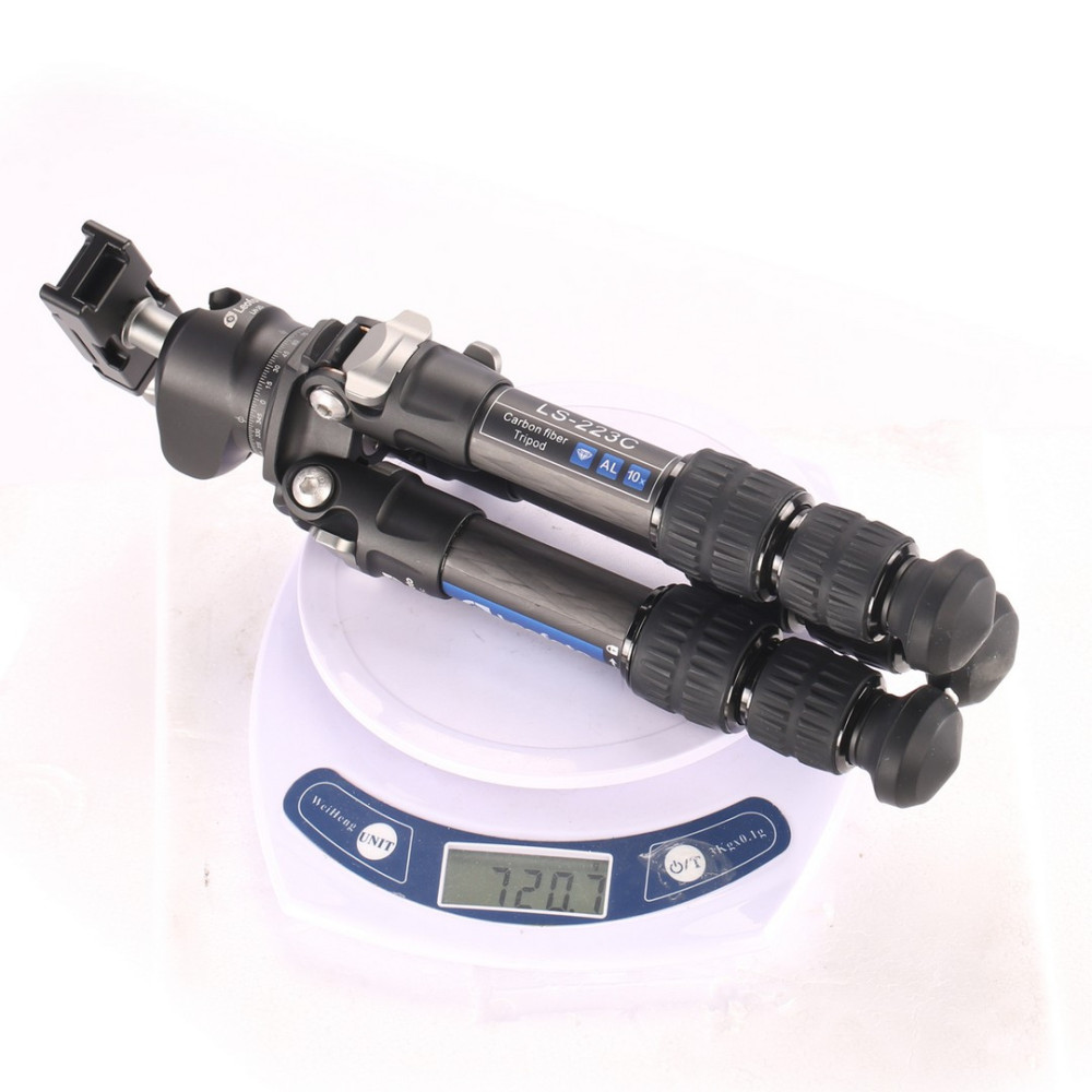Stativ Leofoto Ranger LS-223C je připraven přímo k použití, protože je dodáván včetně kulové hlavy Leofoto LH-25, víceúčelovým šikovným multifunkčním nástrojem a sadou hrotů z nerezavějící oceli. Maximální nosnost stativu a kulové hlavy je 6 kg. To je ideální pro bezzrcadlovku, anebo pro DSLR s menším až středním teleobjektivem. Celá sestava je extrémně lehká. Karbonový stativ LS-223C váží 530 g a kulová hlava LH-25 pouhých 172 g. Jsou tedy dokonalým příslušenstvím pro cestování, třeba i do větší kapsy.
