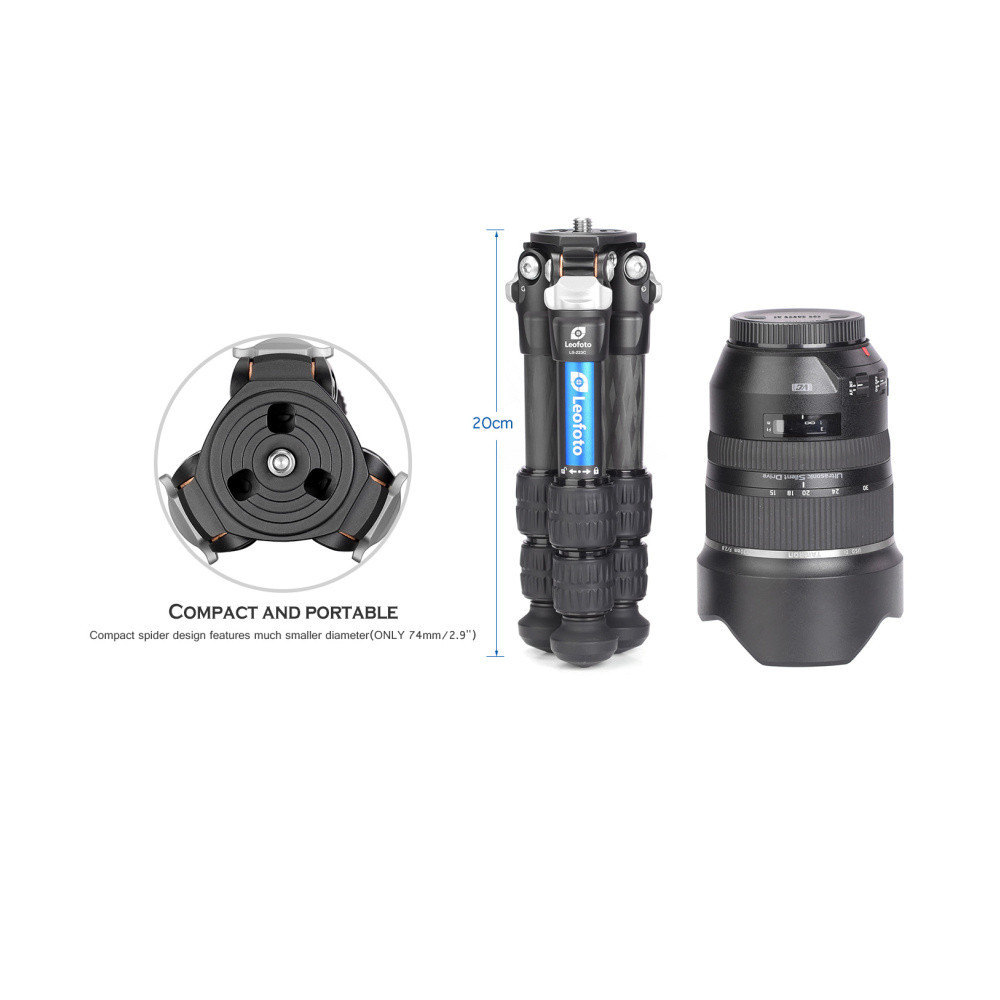 Nejmenší a nejlehčí karbonový stativ Leofoto série Ranger. Označení „extrémně kompaktní“ nejlépe vystihuje tuto kombinaci stativu a hlavy. Může být uložena přímo v jakémkoli přiměřeném fotobatohu, často i v prostorově úspornějším uložení „nastojato“.