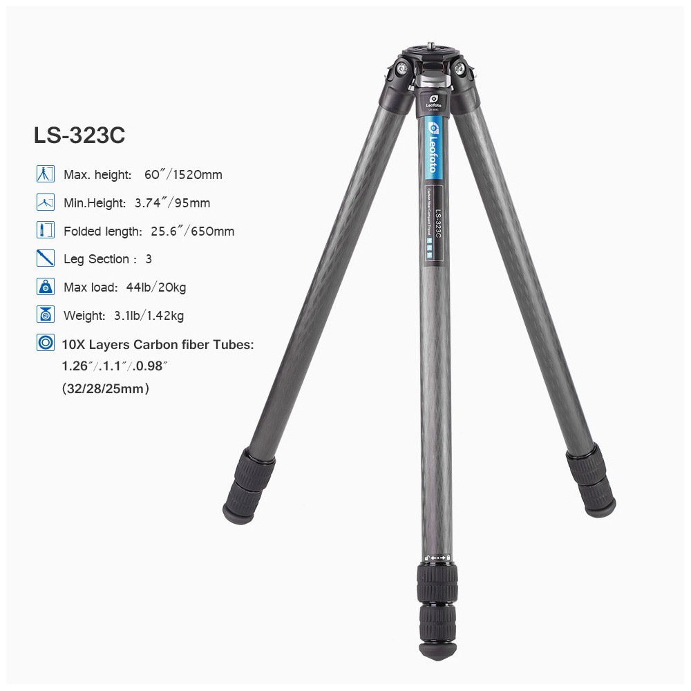 Velmi výkonný karbonový stativ a zároveň jeden z nejvýkonnějších Rangerů. Lehký, kompaktní a přesto mimořádně robustný a silný. Toto jsou hlavní charakteristiky stativu LS-323C. Stativ je dodáván samostatně, bez hlavy.