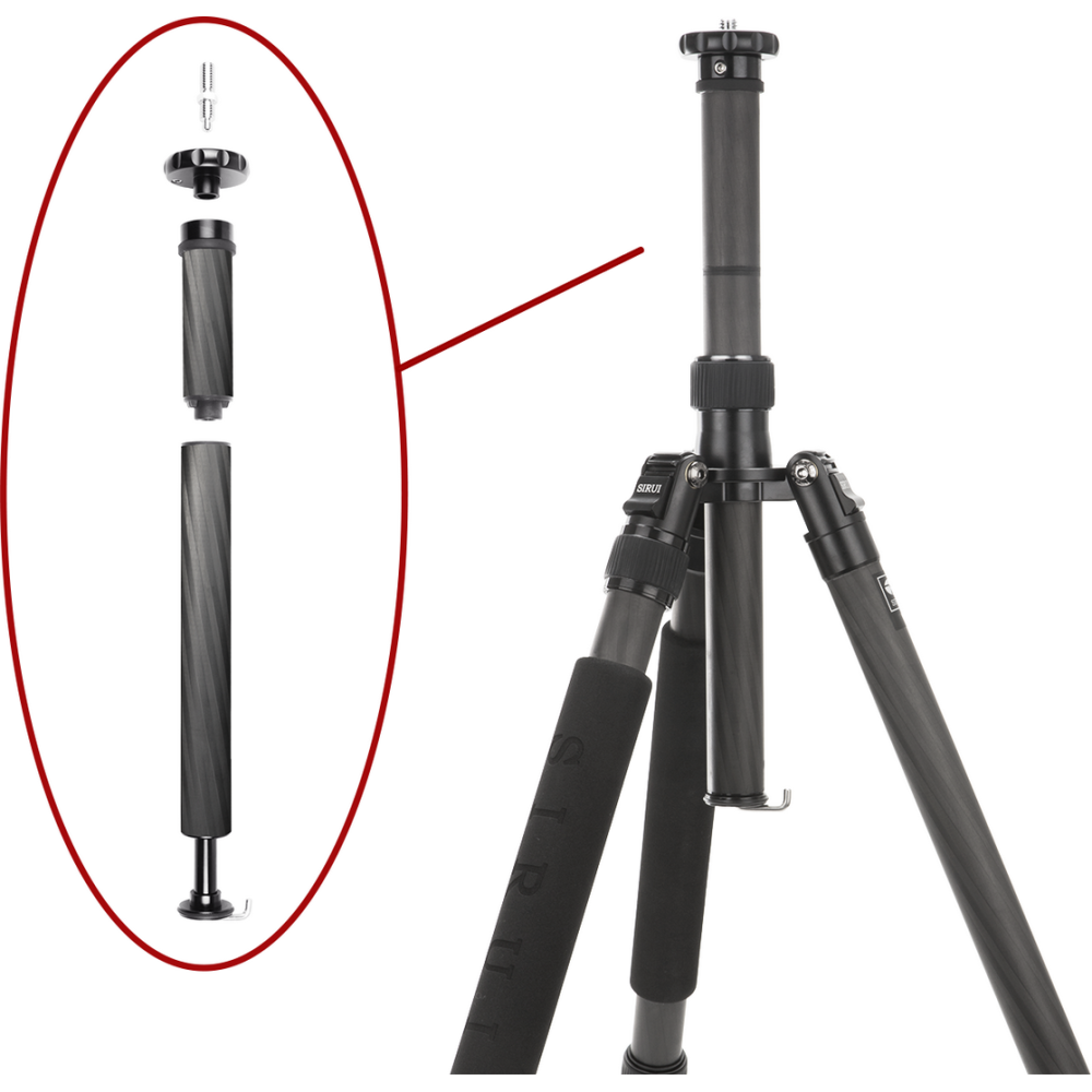 Stabilizační háček na středovém sloupku je součástí standardu SIRUI, stejně jako taška a ochranné rukojeti nohou stativu, které umožňují komfortnější přenášení v chladném počasí. Ramenní popruh tašky se dá použít i jako popruh pro přenášení stativu.